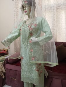 Beautiful Stitched Suit in Soft Organza with embroidery