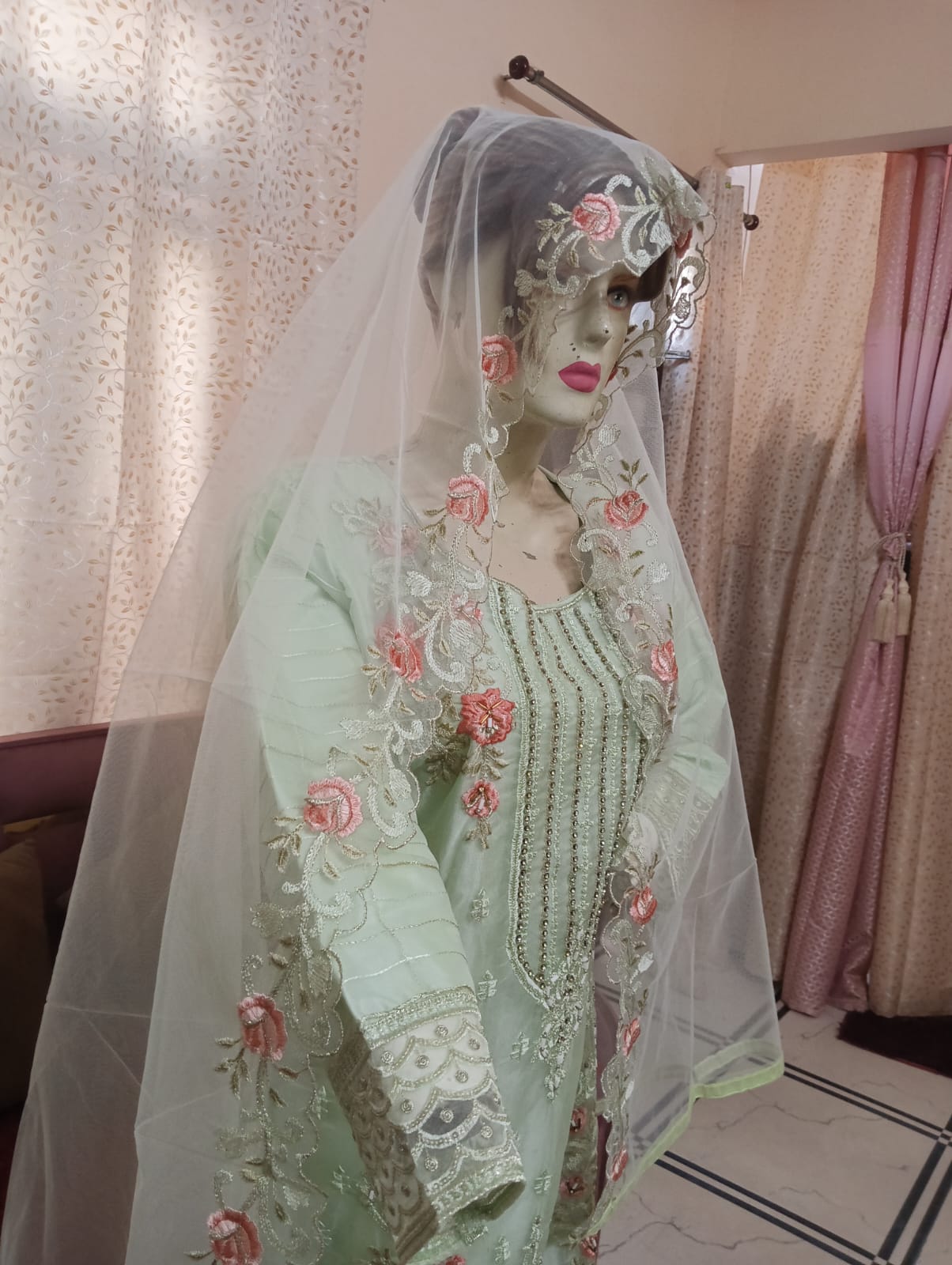 Beautiful Stitched Suit in Soft Organza with embroidery